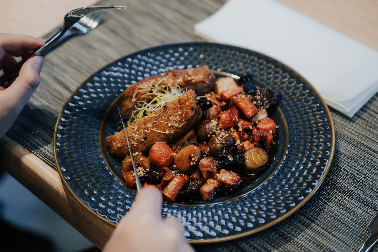 Glavno jelo: Pečena pačja prsa, kesten, cikla, pečena mrkva, celer i micro greens