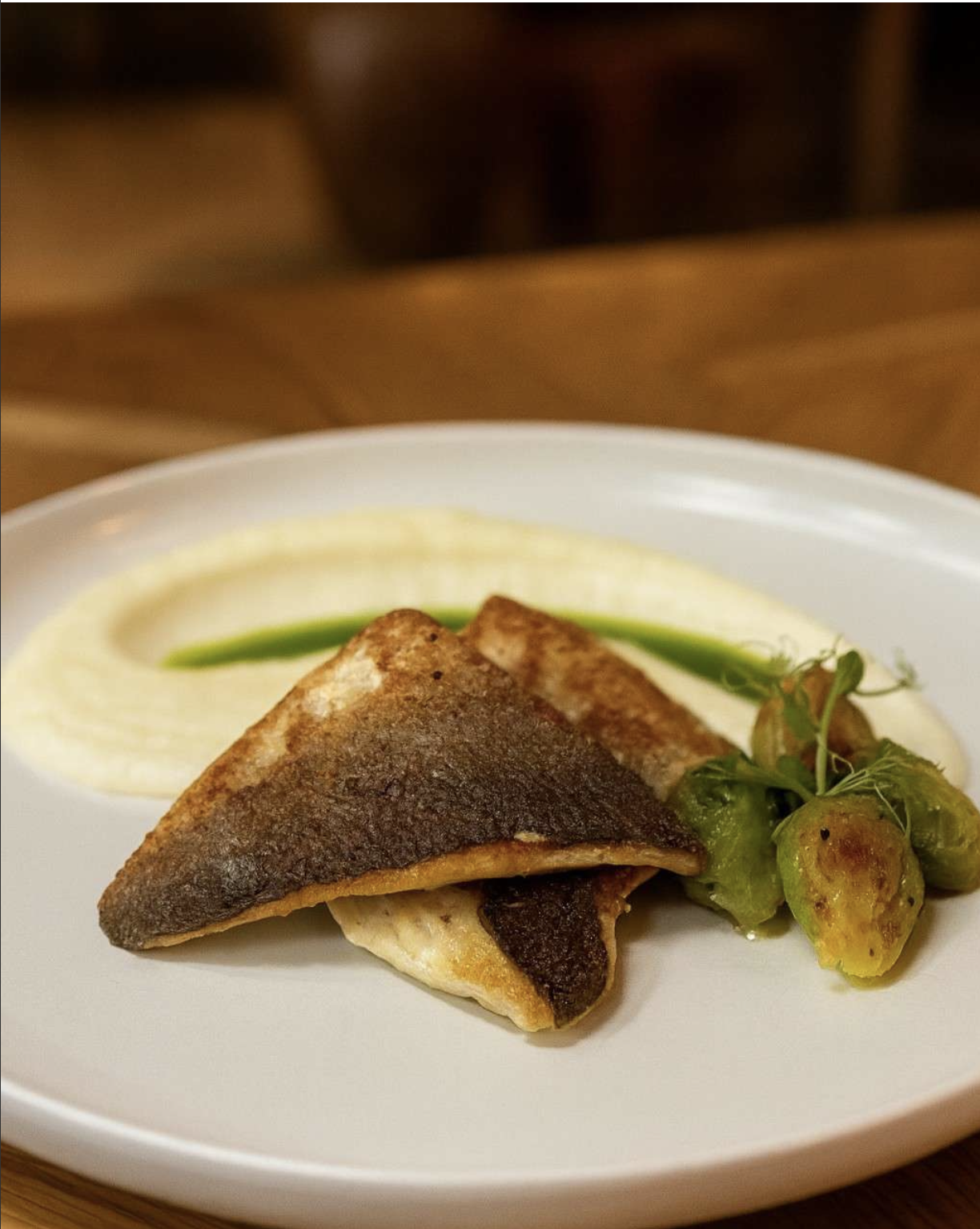 Glavno jelo: Filet bijele ribe s kremom od cvjetače, sotirani kelj pupčar i ulje od divljeg koromača