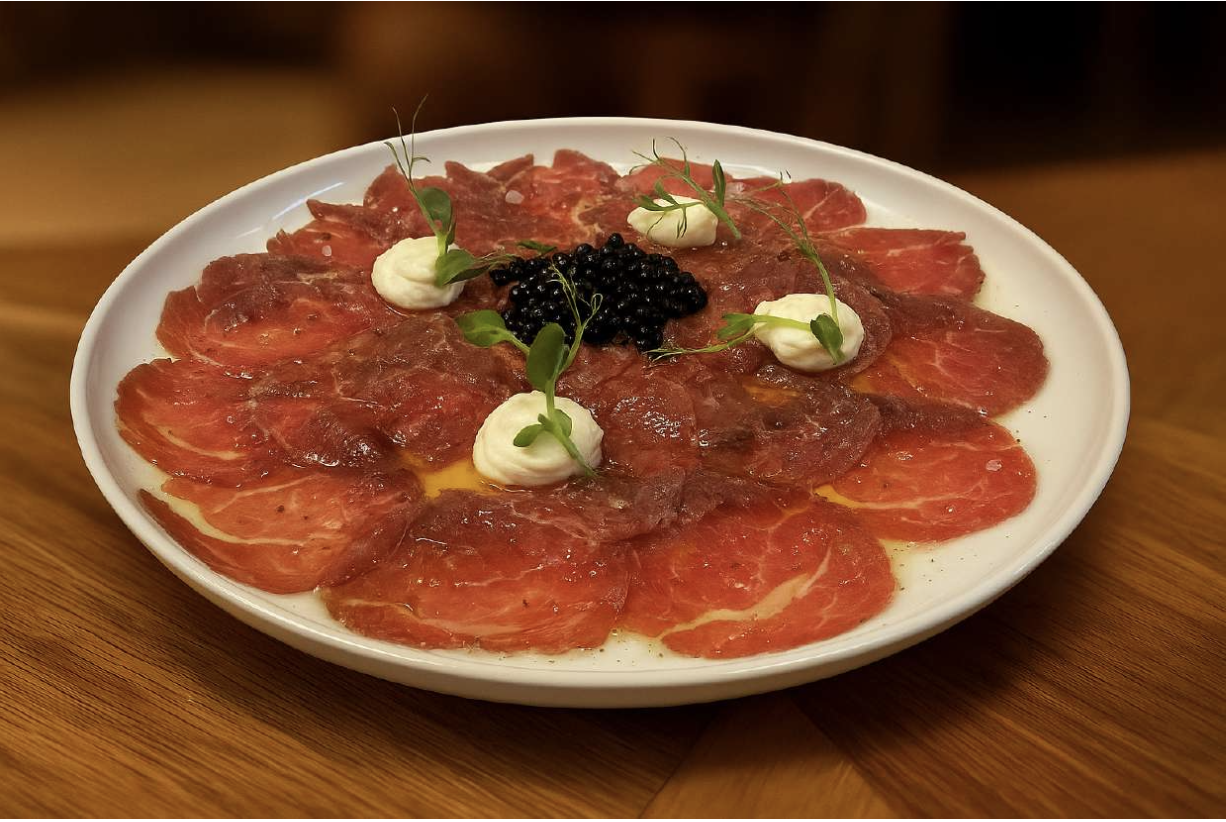 Predjelo: Juneći carpaccio s perlama od Aceto balsamica i Grana Padano kremom