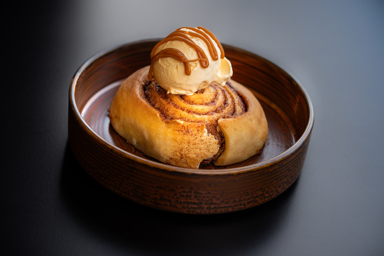 1. Cinnamon roll, sladoled od vanilije i mascarponea, slana karamela